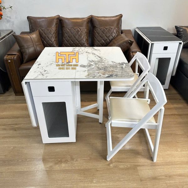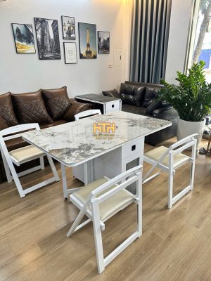 Bàn 1.4M Đá Ceramic + 4 Ghế Đệm Màu Pandora