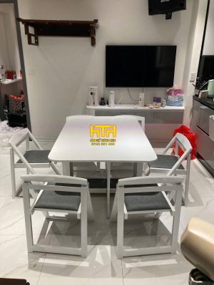 Bàn 1.4m thùng nhỏ+ 6 ghế đệm màu trắng